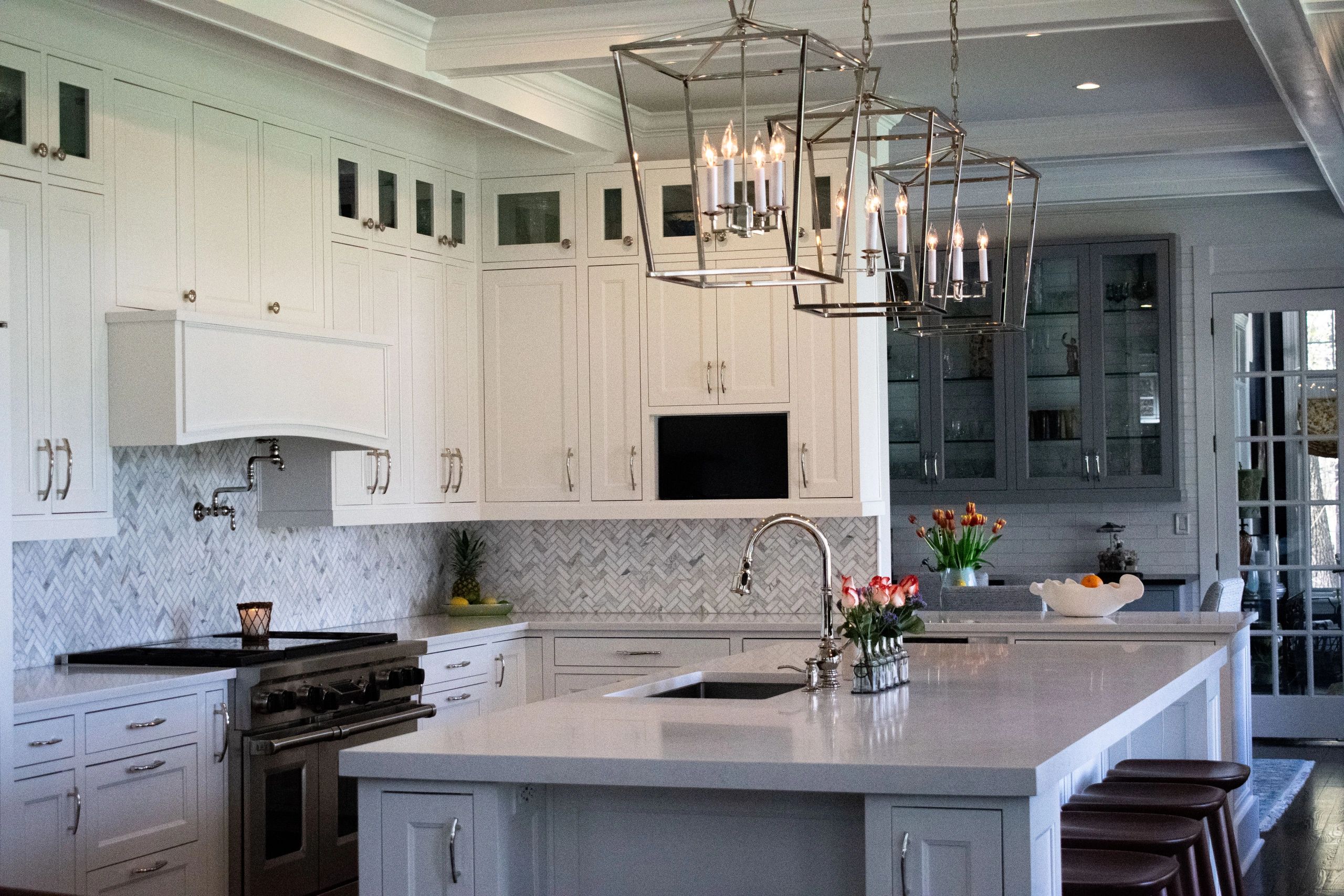White Kitchen Cabinets & Gray Dining Cabinets
